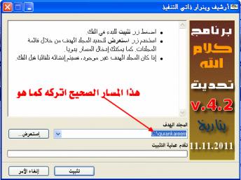 هذا هو المسار الصحيح لتثبيت ملفات التحديث C:\qurankareem