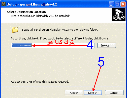 جزاكم الله عنا خير الجزاء اختنا الكريمه وجزى الله شيخنا الكريم ابو جبريل كل خير اما بخصوص الاصدار الرابع هل قمت بتحميل الاصوات وما هي الاصوات التي قمتي بتحميلها ؟؟ فهناك اصوات تحتاج مثل الشيخ محمد المحيسني والشيخ المنشاوي معلم بحاجة لتحديد الخيار mp3 الموجود اسفل البرنامج اذا قمتي بتحديثه ؟؟ السؤال الاهم هل سورة الفاتحة تعمل عند اختيارك لأي مقرئ كتجربة ارجو فحص اكثر من مقرئ للتأكد ؟؟ والسؤال الاخر اذا كانت سورة الفاتحة تعمل في البرنامج فالامر ان شاء الله بسيط وهو عدم تنصيب ملفات الصوت في محلها لهذا يجب عليك اتباع الصورة التاليه ![]() هذه الصورة كمثال على تثبيت الملفات في التحديث للإتجاه الصحيح فقد يكون اثناء فتح ملف الصوت قمتم بتغير المسار بالخطأ لهذا ارجو مرة اخرى فتح ملف الصوت لمقرئ متوفر لديكم وقبل الضغط على كلمة تثبيت ارجو التأكد من المسار الصحيح من خلال فتح القائمة المنسدله المشار اليها في الصورة السابقة برقم 1 واذا كان هناك أكثر من مسار ارجو اختيار المسار الأول ثم نضغط كلمة تثبيت ونرجع للبرنامج ونختار تلاوة الشيخ الذي قمنا بتثبيت ملفاته وإن شاء الله التلاوة تعمل بشكل جيد وفي حال لم يفلح اي من السابق ارجو اعادة تسطيب البرنامج بالكامل من خلال حذف البرنامج بالكامل ثم اعادة تنزيله من جديد دون تغير مسار نزوله ولضمان تشغيل البرنامج بالشكل الصحيح ودون مشاكل نترك البرنامج ينزل على القرص c: كمثال الصور التالية ![]() ![]() ![]() ![]() ![]() ![]() ![]() ![]() ![]() ![]() ![]() ![]() ![]() وبعد ذلك ان شاء الله نقوم بتسطيب الاصوات دون تغير مسارهم وارجو افادتنا بالجديد |