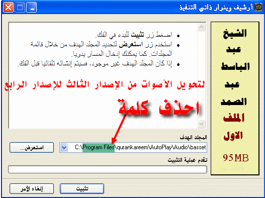 طبعا مجهود عظيم وجزاك ربى الجنة ان شاء الله انا كنت مستنى الاصدار ده بفارغ الصبر لانى بطبع اسطوانات و اوزعها مجانا وبيكون من ضمنها المصحف الخاص بك الف شكر لك وانا محمل برده الاصدر الثالث بكل الشيوخ طبعا هنقل بس ملفات الصوت صح ولا ايه مع الف سلامة |