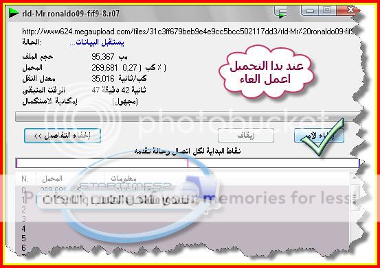 ![]() ملاحظة: الصور من شروحات الإخوة في ستار تايمز.. نبدأ مع الشرح الآن 1- طريقة جعل روابط المواقع مباشرة نفرض أن لدينا رابطا لملف على موقع "ميغا أبلود" مثل هذا: لكي نجعل الرابط مباشر فإننا نقوم بإضافة هذه الكلمة mgr_dl.php خلف com ليصير الرابط هكذا و هذا يصلح مع جميع روابط الميغا أبلود ،،، ******* انتهينا لآن من الجزء الأول من شرحنا و الآن مع الجزء الثاني: 2- التحميل من megaupload باقصى سرعة و جعله يدعم استكمال التحميل: المتطلبات برنامج internet download manager أولا ادخل الى رابط الملف المراد تحميله و اتبع الصور عند بدء التحميل إعمل له إلغاء و ادخل للـ IDM اتبع الصور الان انسخ عنوان الملف و الصقه مكان المحيل انظر الصور اذهب للملف و اعمل له استكمال تحميل إنتهى الشرح بإذن الله تعالى دعواتكم لنا بالتوفيق و السلام عليكم اثبت وجودك