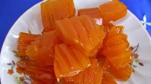 نضع الكلس في الماء ونتركه حتى يصبح الماء صافي والكلس مترسب بالأسفل ... عندما نضع الكلس على الماء يجب ان يفور ... واذا لم يحصل الفوران يكون الكلس غير نافع وفائدة عملية التكليس من أجل ان يقسى القرع ويعطي قرشة لذيذة... ونفس لطريقة التكليس تستعمل لمربى الباذنجان نأخذ الماء الصافي وننقع به القرع بعد تقشيره وتقطيعه مستطيلات ... هناك قولب خاصة تقطعه بأشكال جميلة جدا ... نترك القرع منقوع مدة 24 ساعة يصفى ماء الكلس بعد 24 ساعة ... يغسل القرع جيدا لتخلص من آثار الكلس يضاف له عصير الليمون ويترك ساعة ... يحرك عدة مرات في هذه المدة يضاف له السكر ويرفع على النار ويترك حتى يعقد ... ثم يرفع عن النار ويضاف له المنكه حسب الرغبة يترك ليبرد ... ويحفظ في اوان زجاجية ![]() |