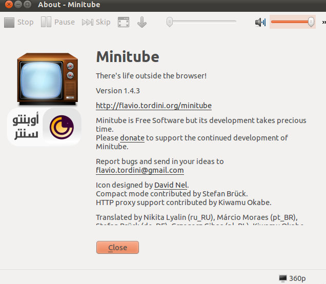 ![]() صدور minitube 1.4.3 على اوبنتو ![]() الرائع minitube هو تطبيق مميز لمشاهدة الفيديوهات على اليوتيوب بدون استخدام المتصفح وحتى بدون تثبيت فلاش بلير,البرنامج فى اصداره الجديد1.4.3 جاء بعلاج للعلل والمشاكل وللمزيد من هنا ## البرنامج مميز جدا حيث يمكنك عمل التالى: البحث و مشاهدة فيديوهات اليوتيوب بدون استخدام المتصفح او الفلاش امكانيات التحكم الكامل كأنه مشغل فيديو امكانية تنزيل الفيديو الذى تشاهده بسهولة ## لتنصيب البرنامج: sudo add-apt-repository ppa:ferramroberto/minitube sudo apt-get update sudo apt-get install minitube ![]() اثبت وجودك