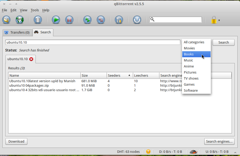 1/ يمكنك عن طريق البرنامج البحث عن كتب وبرامج وفيديوهات والعاب وصور وافلام على مواقع التورنت المشهورة مثل موقع isohunt ومواقع اخرى..........وتحميلها وبالتالى هذه الميزة تغنينا عن برنامج الا وهو برنامج torrent- search وكما يمكنك اضافة مواقع تحميل تورنت اخرى اذا لم تجدها بالبرنامج.