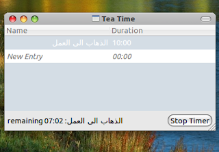![]() TeaTime اداة بسيطة لتنبيهك اثناء العمل على الكمبيوتر تقريبا الجميع عندما يجلس على الكمبيوتر ينسى كل شىء ولكن مع هذه الاداة البسيطة يمكنك التحكم فى وقتك اثناء جلوسك حيث تنبهك الاداة بالعمل الذى تود عمله بعد فترة من جلوسك. فهذه الاداة بسيطة للغاية فبها يمكنك ضبط وقتك وانت جالس على الكمبيوتر فمثلا ستقوم بالصلاة بعد نصف ساعة, فقطقم بكتابة الوقت المحدد والذى سيقوم البرنامج بتذكيرك بعده, حيث يظهر التنبيه لك وانت جالس. ![]() ![]() ## لتنصيب البرنامج: sudo apt-add-repository ppa:rojtberg sudo apt-get update sudo apt-get install teatime-unity موقع البرنامج ![]() اثبت وجودك